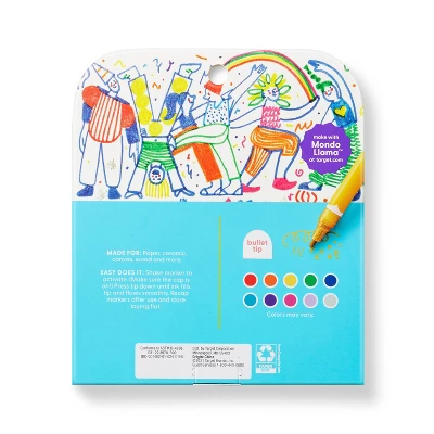 Add some sparkle to your art and craft projects with these 10-Count Glitter Paint Markers from Mondo Llama™. In a convenient marker design with 1.6mm bullet tips for creating smooth, even lines, these glittery paint markers offer a fun way to draw on surfaces from paper and canvas to ceramic, wood and more. The glittery paint adds sparkly detail to your craft projects, making it a fun choice for festive greeting cards, glamorous portraits or even customizing a ceramic planter for yourself or to give as a gift. Artwork by Cynthia Alonso.