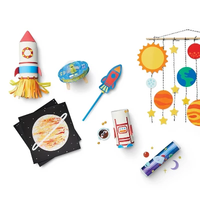 Help your kid explore the wonder of space with the Space STEAM Wood Craft Kit from Mondo Llama™. This space discovery kit includes twine, paints, gems, googly eyes, paint brush and more to help create their own colorful outer space. Made with a mix of wood, plastic and paper, this craft kit is suggested for ages 5 and above.